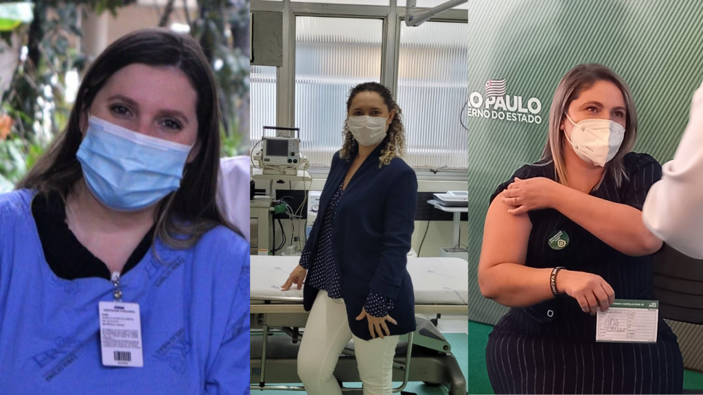 Danielle Xavier de Campos, 34, gerente de enfermagem no Hospital Emílio Ribas, conta que, durante a pandemia, o maior sacrifício foi ficar longe da família. “Fiquei sem ter contato com meus pais e avó. Não os vi pessoalmente até se vacinarem. Os aniversários, dia das mães e dos pais, tudo era comemorado online. Ficamos eu, meu marido e minhas duas filhas isolados”, lembra. Ela trabalhava no Hospital Pirajussara desde 2011, e foi convidada para abrir os leitos da UTI Covid do Hospital Emílio Ribas.