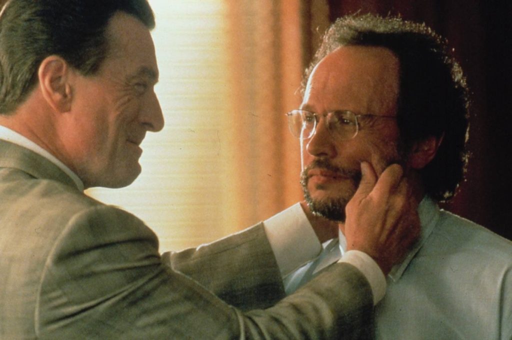Um dos pontos altos do filme é a química entre os dois atores, que realmente funciona! De Niro abusa de toda a experiência, interpretando chefões da máfia e Crystal conquista com suas caretas características.