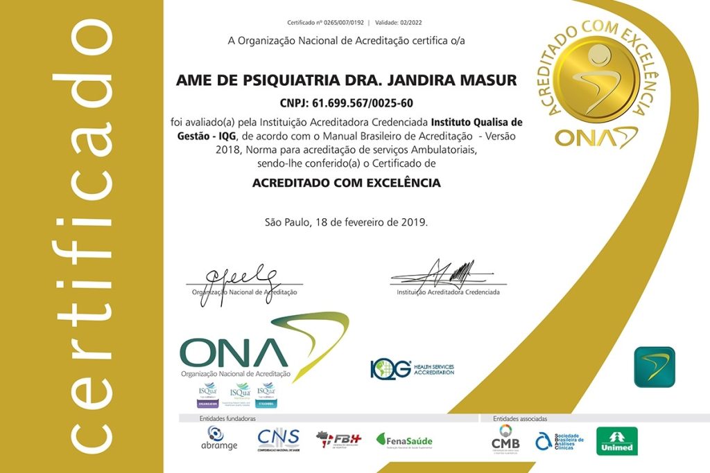 Ame Psiquiatria Jandira Masur Acreditado Com Excelência Pela Organização Nacional de Acreditação