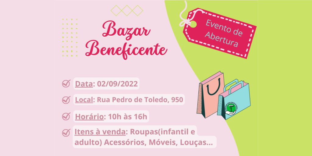No dia 02 de setembro, às 10h, acontece o evento de inauguração do Bazar Beneficente permanente em prol do Hospital São Paulo/HU/Unifesp/SPDM. No local, serão comercializados diversos itens novos e usados, como peças de vestuário (adulto e infantil), acessórios, móveis, objetos de decoração e louças