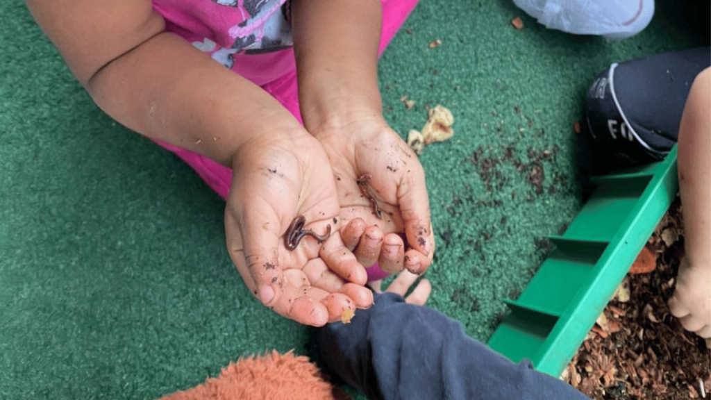 • A natureza e suas possibilidades: As crianças exploraram os diversos elementos da natureza e, através deles, descobriram novas sensações como cheiros e texturas.