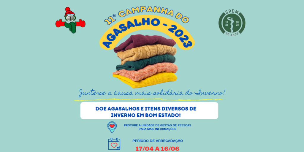 A SPDM (Associação Paulista para o Desenvolvimento da Medicina) promove, até 16 de junho, a Campanha do Agasalho, com o tema “Junte-se à causa mais solidária do inverno”.