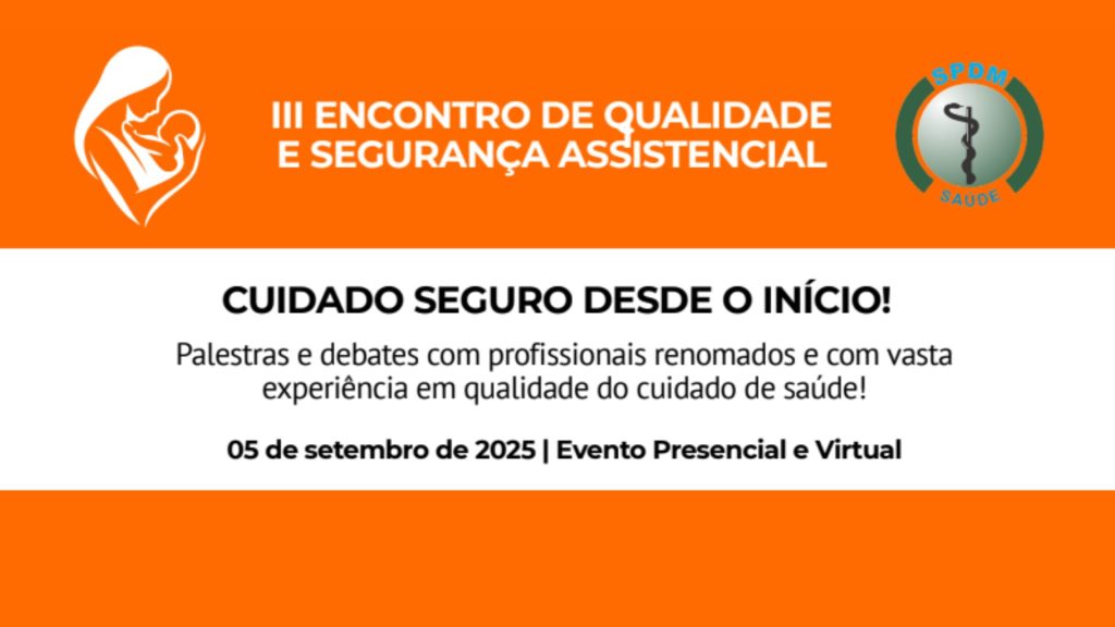 No dia 05 de setembro de 2025, acontece o III Encontro de Qualidade e Segurança Assistencial das Instituições Afiliadas da SPDM, com o tema “Cuidado Seguro Desde o Início!”. O evento será presencial e virtual, reunindo profissionais e especialistas com vasta experiência em qualidade no cuidado à saúde.