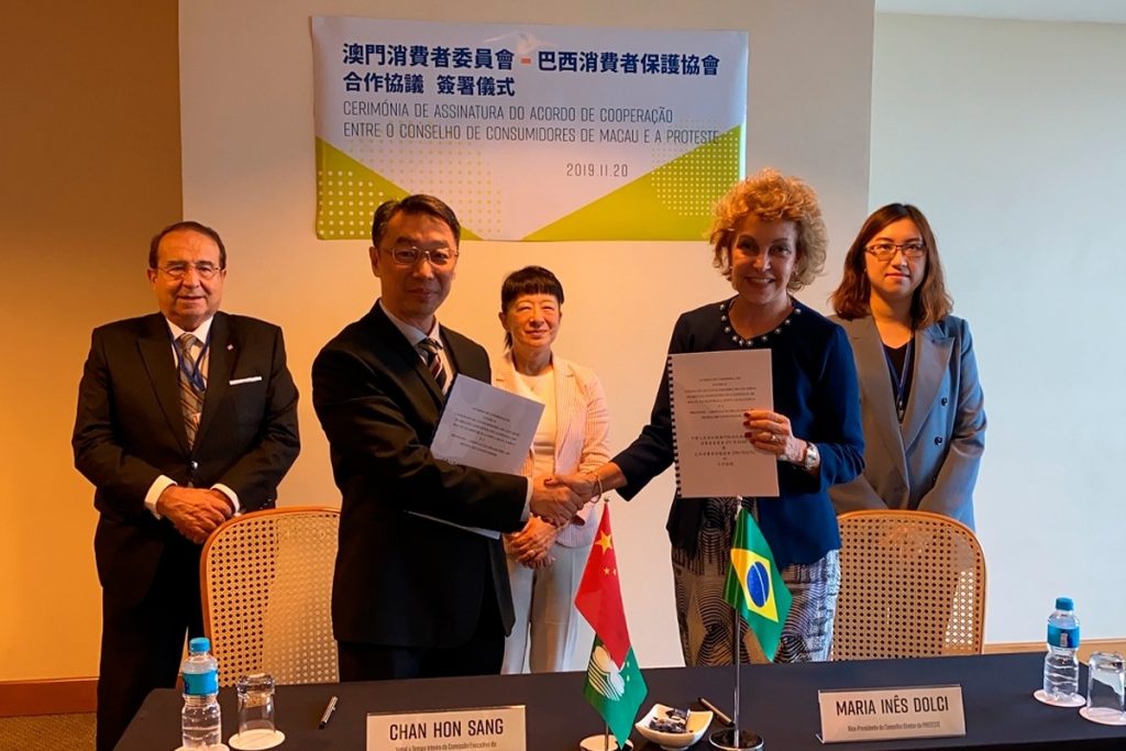 O Conselho de Consumidores (CC) assinou um acordo de cooperação com a Proteste – Associação Brasileira de Defesa do Consumidor com vista a estabelecer relações de parceria a longo prazo. O acordo irá contribuir para intensificar as ligações entre Macau e o Brasil na área de defesa do consumidor, bem como entre as organizações de consumidores da China e dos Países de Língua Portuguesa (PLP), por forma a fazer um bom trabalho na protecção dos direitos e interesses dos seus cidadãos na área de consumo.
