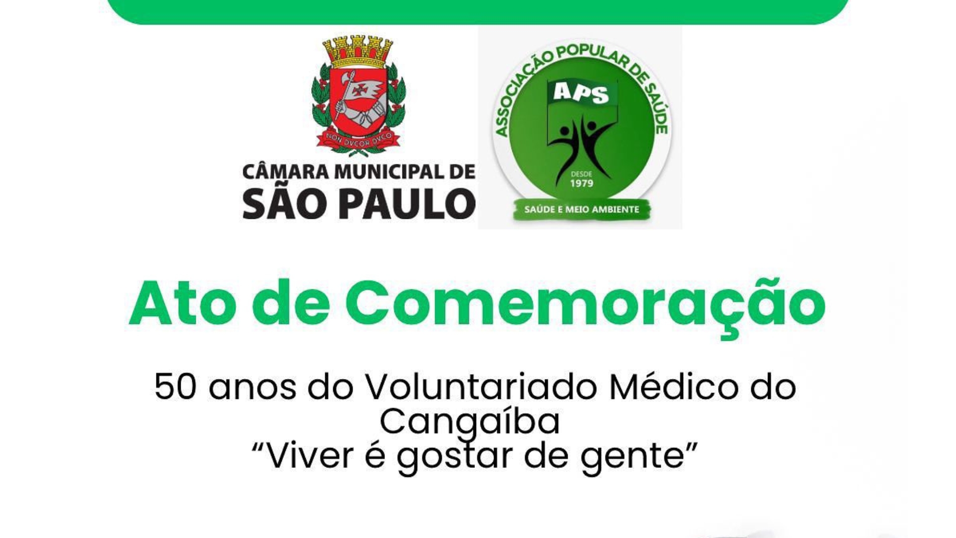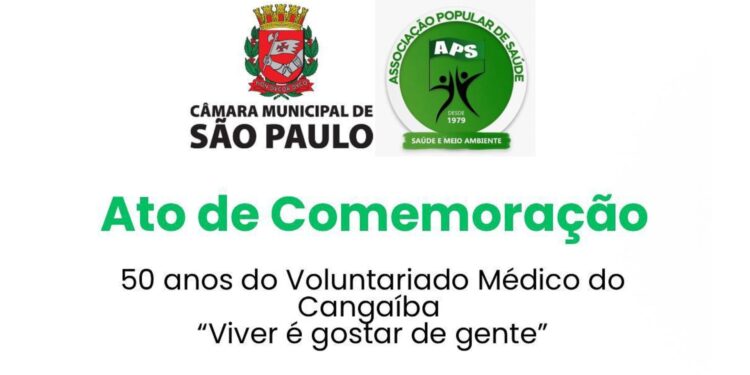 No dia 15 de outubro, a partir das 19h, a Câmara Municipal de São Paulo realizará uma solenidade para celebrar os 50 anos do Voluntariado Médico do Cangaíba.