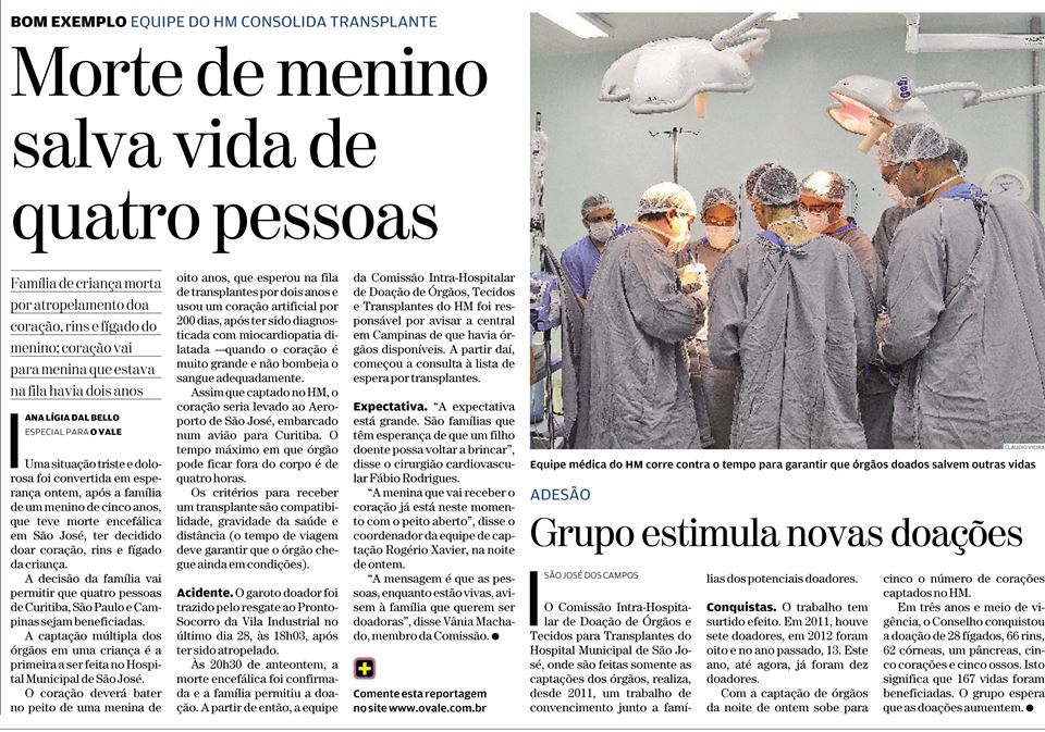 Morte de menino salva vida de quatro pessoas