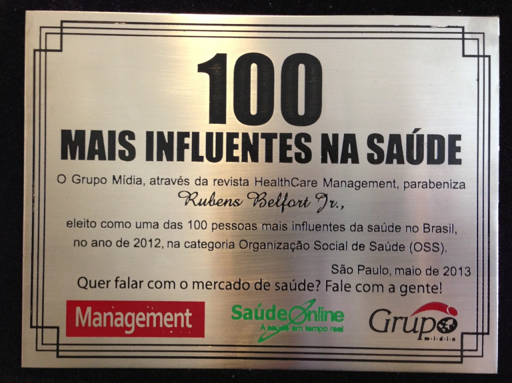 Presidente da SPDM recebe o reconhecimento como uma das 100 pessoas mais influentes na área de saúde no Brasil