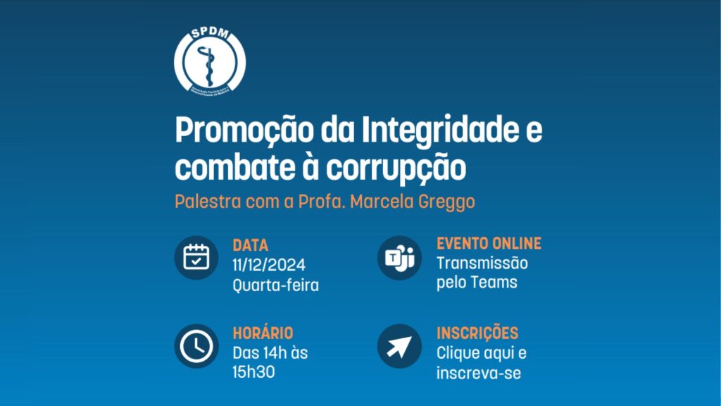 Na quarta-feira (11/12), às 14h, a área de compliance e o Núcleo de Apoio à Gestão (NAG) da SPDM – Associação Paulista para o Desenvolvimento da Medicina realizarão a palestra “Promoção da Integridade e combate à corrupção” que irá ocorrer de forma online pela plataforma Microsoft Teams.